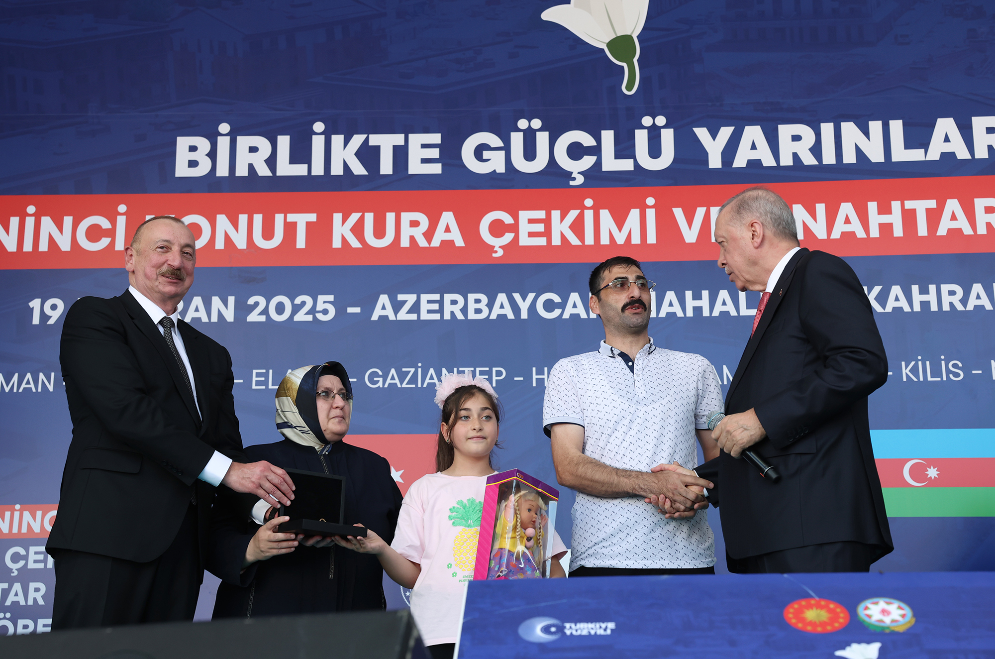 Cumhurbaşkanı Recep Tayyip Erdoğan ve Azerbaycan Cumhurbaşkanı İlham Aliyev’in teşrifleriyle Azerbaycan Mahallesi’nde “250 Bininci Afet Konutu Kura Çekim ve Anahtar Teslim Töreni” düzenlendi. Törende, Kahramanmaraş’ta 3 bin 567 konut ve 744 iş yeri olmak üzere deprem bölgesinde toplam 49 bin 56 bağımsız bölümün kura çekimi yapılarak hak sahiplerine teslim edildi. Program kapsamında Haydar Aliyev Kültür Merkezi’nin de temeli atıldı.