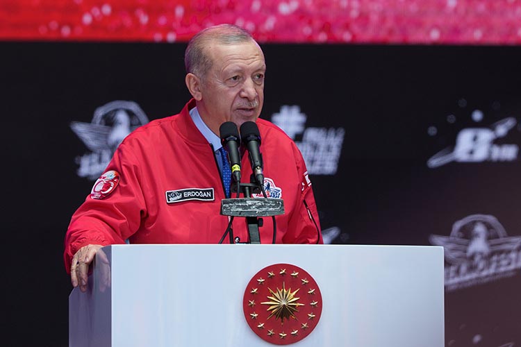 “Bu yola revan olduğumuzda bize ‘boşuna heveslenmeyin, yapamazsınız, başaramazsınız’ diyenlere bugün en güzel cevabı sizlerle veriyoruz.” ifadesini kullanan Erdoğan, milli muharip uçak KAAN, insansız savaş uçağı Bayraktar Kızılelma, muharip insansız uçak ANKA-3, jet motorlu eğitim ve taarruz uçağı Hürjet, yeni nesil temel eğitim uçağı Hürkuş, ağır sınıf taarruz helikopteri ATAK-2 ve daha nicelerinin Gök Vatan’da, çok maksatlı amfibi gemisi TCG Anadolu’nun ise Mavi Vatan’da bayrağı gururla dalgalandırdığını söyledi.