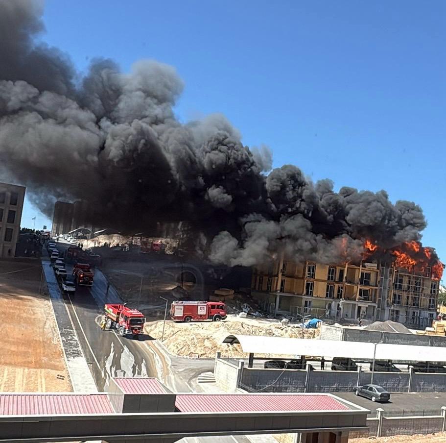 Kahramanmaraş Orman Bölge Müdürlüğü’nün inşaat alanındaki henüz tamamlanmayan lojman binasının çatısında çıkan yangına ekiplerin müdahalesi devam ediyor. Yangında 4 katlı ahşap lojman binası tamamen yandı, müdahale süren diğer binada ise hasar oluştu.