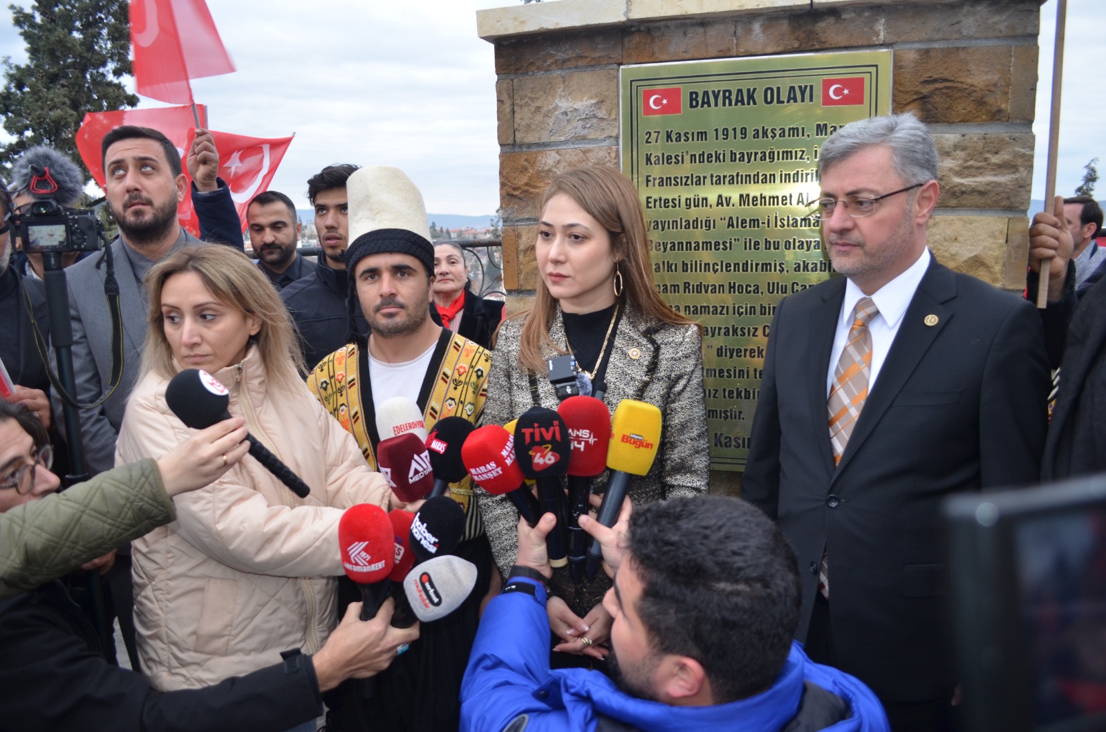 “27 Kasım 1919 gecesi bu burçlardan Türk bayrağı indirildiğinde, Maraş halkı ertesi gün silahsız olmasına rağmen ‘Allah Allah’ nidalarıyla ayağa kalkmış ve kendi kaderini tayin etmişti. Bugün de aynı ruhla bu bayrağı yeniden en yüksekte dalgalandırıyoruz. Bu bayrak düşmez, düşmeyecek. Türk milleti ve Milliyetçi Hareket Partisi mensupları, bu sancağın gölgesinde hem acılarını dindirecek hem de bu şehri yeniden yaşatacaktır.”