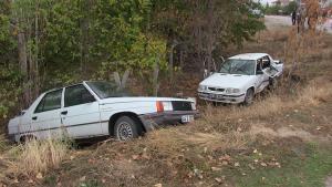 Çarpmanın etkisiyle otomobiller yol kenarındaki bahçeye girdi.