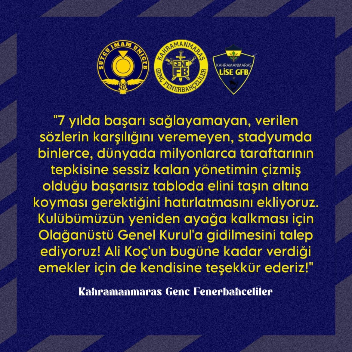 Kahramanmaraş Genç Fenerbahçeliler tarafından, sosyal medya hesabından yapılan istifa çağrısı büyük yankı buldu.