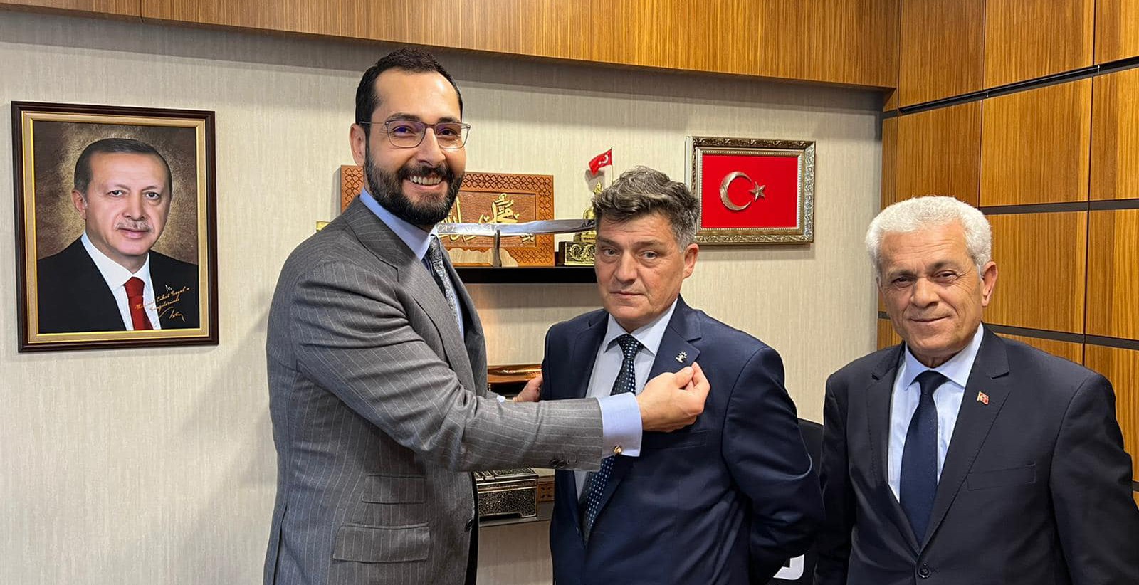 Otobüs ve İşletmecileri Kooperatifi Başkanı Yaşar Karagöl’e Ak Parti rozetini TBMM’de Ak parti Kahramanmaraş milletvekili Mehmet Cihat Sezal taktı.