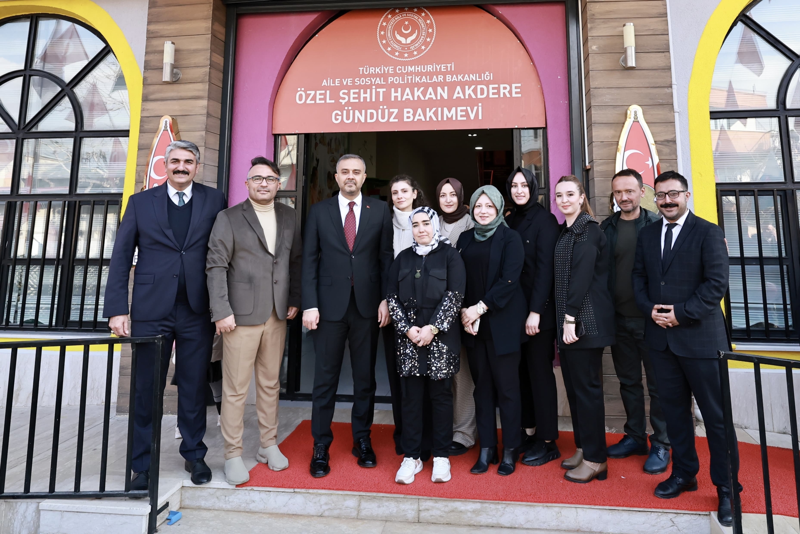 çocuklarımız hem eğlenecek hem de toplumsal değerleri, paylaşmayı, dayanışmayı ve kardeşliği öğrenerek deneyimleyecekler. Hemen yan tarafımızdaki küçük binayı da Aile ve Sosyal Hizmetler İl Müdürlüğümüze tahsis ettik. Bu bina, Psikososyal Destek Merkezi olarak bölgedeki vatandaşlarımıza hizmet verecek. Bugünün özel bir anlamı da var. Zekai Ablamız ve Hüseyin Amcamız, Şehit Hakan Akdere’nin anne ve babası, bugün burada bizimle birlikte. Bakımevimizde şehidimizin anısına bir Şehitlik Köşesi oluşturduk. 2016 yılında şehit düşen Hakan Akdere kardeşimize ve tüm şehitlerimize Allah’tan rahmet diliyor, mekanlarının cennet olmasını temenni ediyorum. Gündüz Bakımevimizin oluşturulmasında emeği geçen tüm değerli çalışma arkadaşlarıma ve paydaş kurumlarımıza teşekkür ediyorum. Bu anlamlı tesisin ilçemize hayırlı olmasını diliyor, herkese saygılarımı sunuyorum.” İfadelerine yer verdi.”