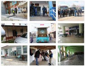 İlçesindeki dezenfekte çalışmalarıyla ilgili bilgi de veren Başkan Yılmazcan; “ilk andan itibaren işi sıkı tuttuk ve dezenfekte anlamında tüm tedariklerimizi hemen sağlayarak çalışmalara başladık. Önceliği toplu yaşam alanlarından başlayarak kırsal mahallelerimize kadar yapıyoruz. Yoğun olarak ortak kullanım alanlarının yanında Resmi kurumlarımızı, sağlık kuruluşlarımızı, toplu taşıma araçlarımızı, esnaflarımızın işyerlerini, cami ve cem evlerimizi, ilçe merkezi ve kırsal mahallelerimizdeki çöp konteynırlarının bulunduğu alanları bankamatiklere kadar periyodik şekilde dezenfekte ve hijyen çalışmalarımız sürüyor.” Diye konuştu.