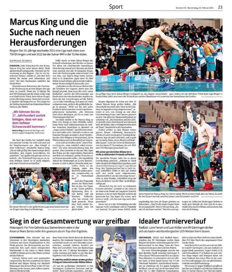 Kahramanmaraş Büyükşehir Belediyesi tarafından düzenlenen Şalvar Güreşi Dünya Şampiyonası’nın yankıları sürüyor. Dünya Etnospor Konfederasyonu, Türkiye Güreş Federasyonu ve Türkiye Geleneksel Spor Dalları Federasyonu işbirliğinde Kahramanmaraş’ta gerçekleştirilen organizasyonda 40 ülkeden 400 sporcu kıyasıya mücadele etmişti. Altın kemerin sahibi İsmail Balaban olurken yabancı sporcular da turnuvanın önemli bir deneyim olduğunu belirtmişti. Bu kapsamda Almanya’da yayın yapan Kreiszeitung gazetesi, sporcuları Marcus King’in deneyimlerini sayfalarına taşıdı.