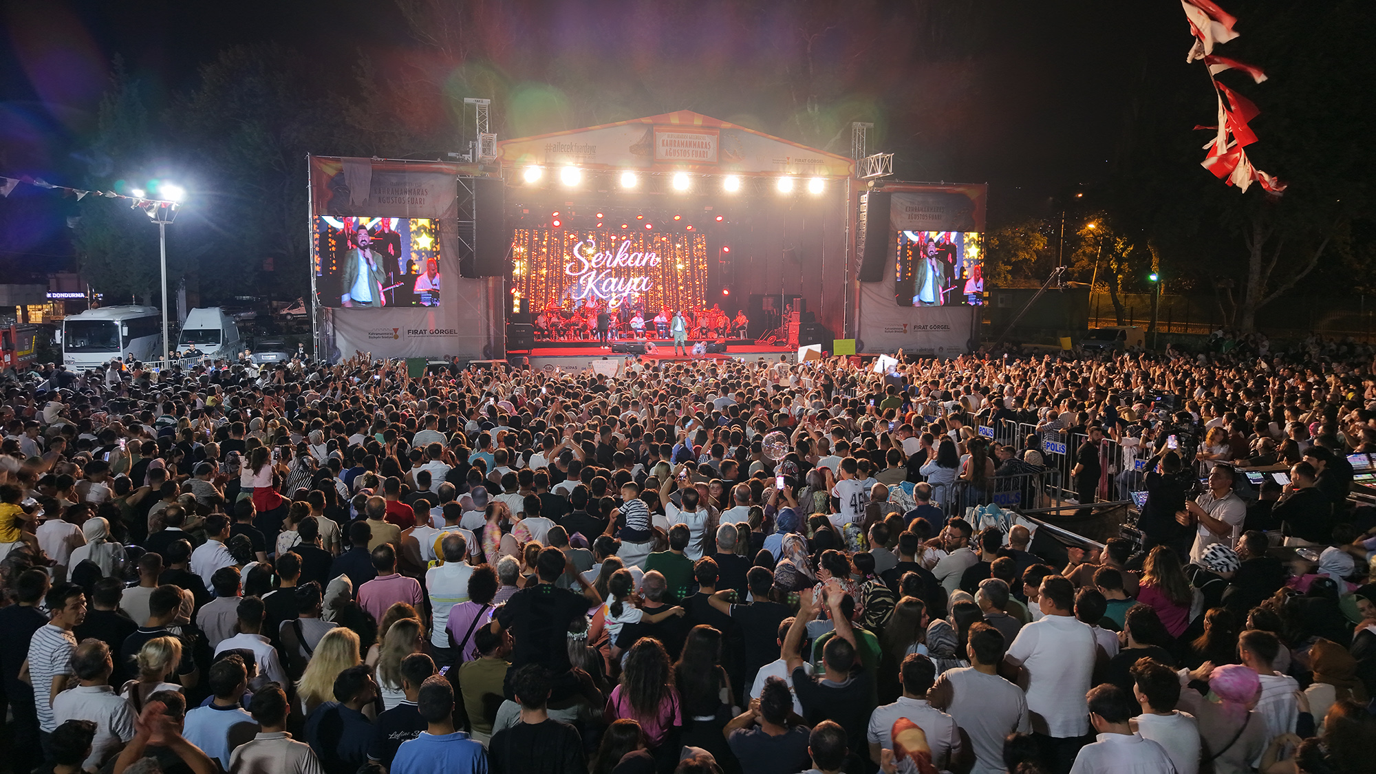 Kahramanmaraş Büyükşehir Belediyesinin Geleneksel Ağustos Fuarı, müzik dolu geceleriyle vatandaşlara unutulmaz anlar yaşatmaya devam ediyor. Fuarın 27’nci gününde sahne alan arabesk müziğin güçlü sesi Serkan Kaya, KAFUM’da verdiği konserle dinleyicilerine adeta müzik ziyafeti sundu. Konser öncesinde alana akın eden binlerce vatandaş, Serkan Kaya’ya büyük ilgi gösterdi. Konser alanı tıklım tıklım dolarken, müzikseverlerin coşkusu gece boyunca hiç dinmedi. Sahnede sevilen parçalarını seslendiren sanatçı, dinleyicilerinden uzun süre alkış aldı. Kaya; “Mesele”, “Kara Gözlüm”, “Kalakaldım”, “Yaranamadım” ve “Zor Bela” gibi hit şarkılarının yanı sıra, Türk müziğinin unutulmaz eserleri arasında yer alan “Bir Bilebilsen”, “Hangimiz Sevmedik”, “Sen Aldırma”, “Yaralandın mı Can” ve “Leylim Ley”i de kendine özgü yorumu ile seslendirdi. Geniş repertuvarı ve sahne enerjisiyle hayranlarını mest eden sanatçı, performansıyla KAFUM’u dolduran kalabalıktan tam not aldı. Gecenin ilerleyen saatlerinde ise eğlence doruğa çıktı. Serkan Kaya’nın oyun havaları seslendirdiği bölümde, müzikseverler halay çekerek konser alanında renkli görüntüler oluşturdu. Coşkunun zirveye ulaştığı final bölümü fuara katılan vatandaşların hafızalarına unutulmaz bir anı olarak kazındı.
