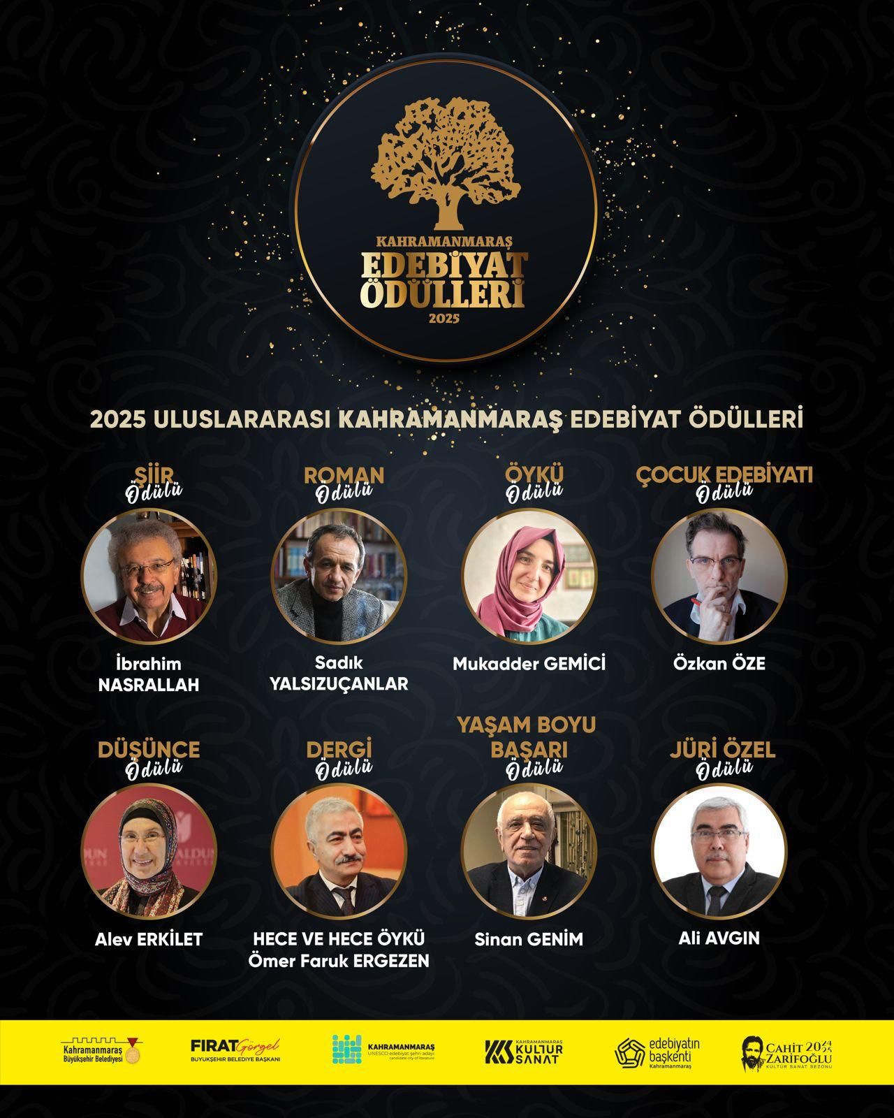 Protokol konuşmalarının ardından, Uluslararası Kahramanmaraş Şiir ve Edebiyat Günleri kapsamında düzenlenen Edebiyat Ödülleri sahiplerini buldu. “Şiir” kategorisinde Filistinli şair ve yazar Prof. Dr. İbrahim Nasrallah, “Öykü” kategorisinde Mukadder Gemici, “Roman” kategorisinde Sadık Yalsızuçanlar, “Çocuk Edebiyatı” kategorisinde Özkan Öze, “Araştırma – İnceleme Yazısı” kategorisinde Alev Erkilet ve “Yaşam Boyu Başarı” kategorisinde Sinan Genim ödüle layık görülürken “Jüri Özel Ödülü” Ali Avgın’a verildi.