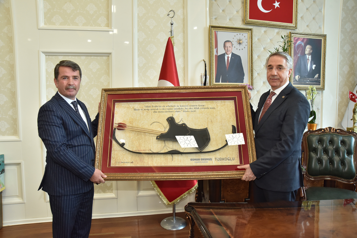 Bir dizi ziyaretler için Türkoğlu ilçesine gelen AK Parti MKYK Üyesi Yerel Yönetimler Başkan Yardımcısı Mücahit Yanılmaz, Kahramanmaraş Büyükşehir Belediye Başkanı Hayrettin Güngör, AK Parti İl Yerel Yönetimler Başkanı Hakan Dereli ve Genel Merkez Yerel Yönetimler Uzmanı Ferdi Kandemir ile birlikte, Türkoğlu Belediye Başkanı Osman Okumuş’ u makamında ziyaret ettiler.